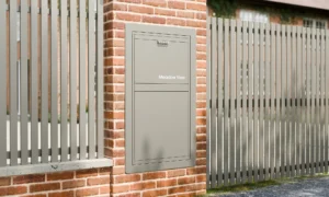 £419.99 Add to basketTired of missed deliveries or parcels left out in the rain? The Miami Parcel Box offers a secure, weatherproof solution for receiving parcels at your gate, fence, or even through a wall. Presented in an elegant Pebble Grey ( RAL 7032) finish, often referred to as Cotswold Green, it blends beautifully with a variety of exteriors.