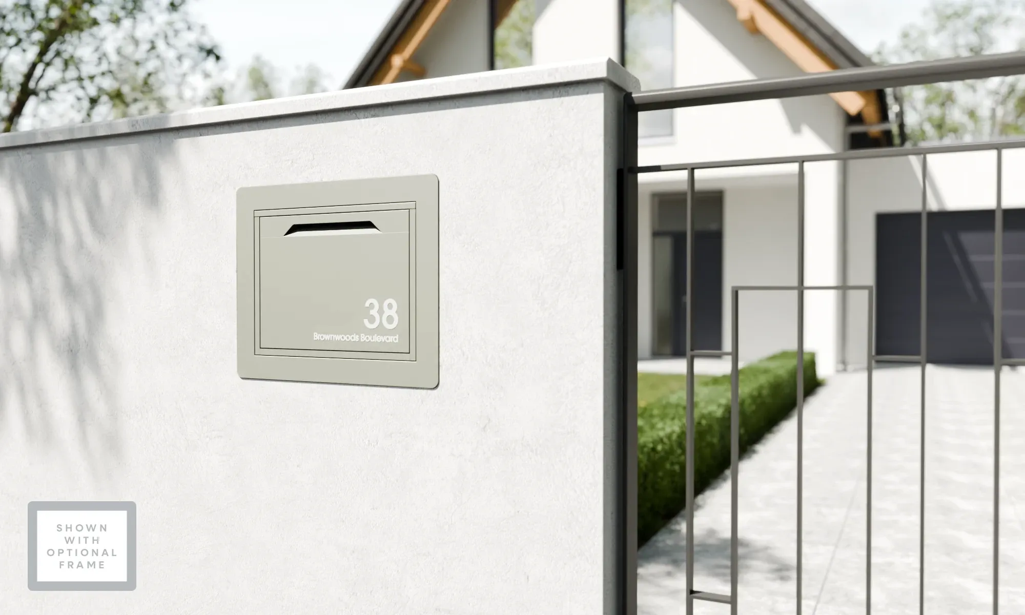 The hugely popular Chelsea Parcel Box II is designed to be built into gates, fences, or walls, offering secure, weather-resistant protection for your parcels. With an optional frame for added support and aesthetic appeal, it ensures your deliveries stay safe, dry. A combination lock can be purchased separately if you prefer that over a key lock. Presented in an elegant Pebble Grey finish, often referred to as Cotswold Green, it blends beautifully with a variety of exteriors.