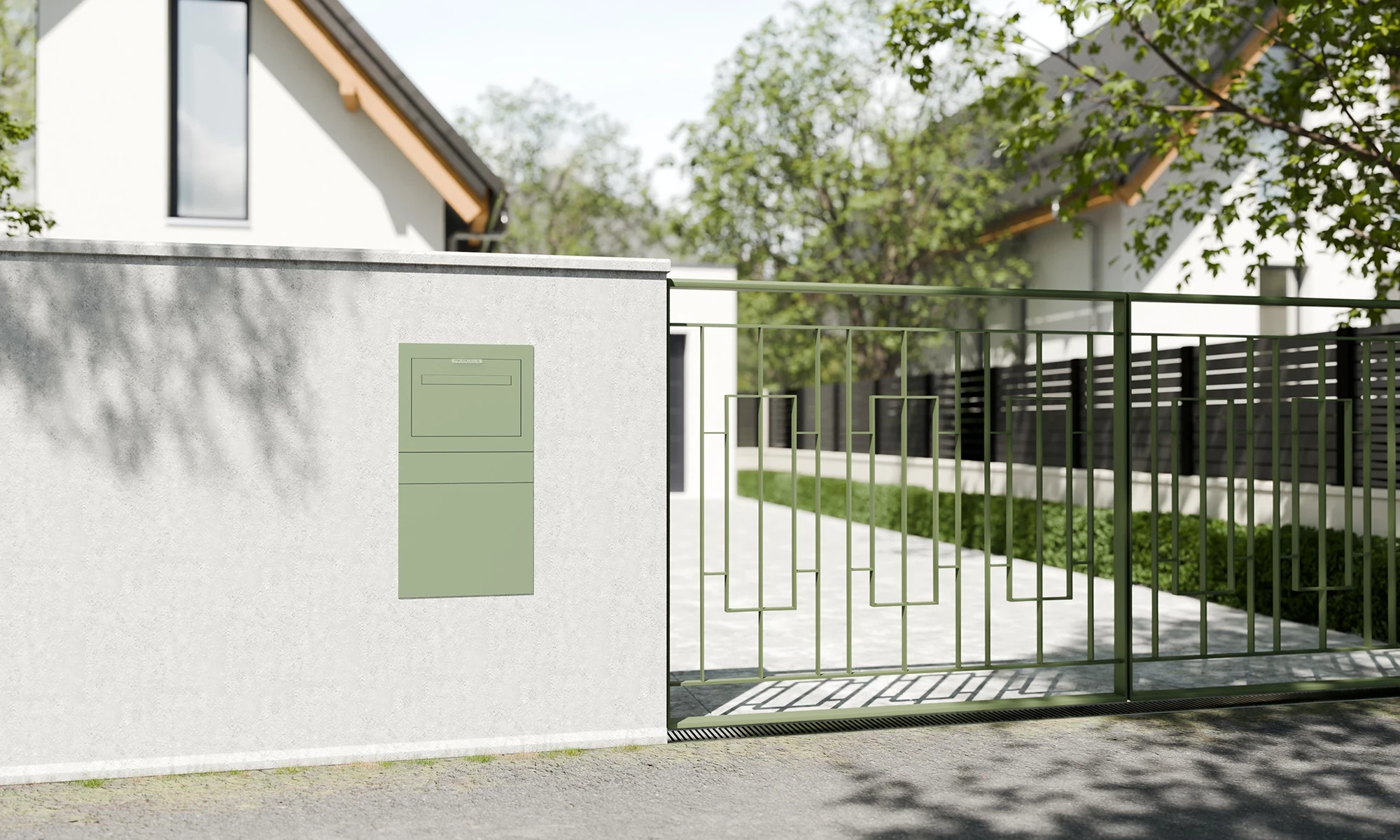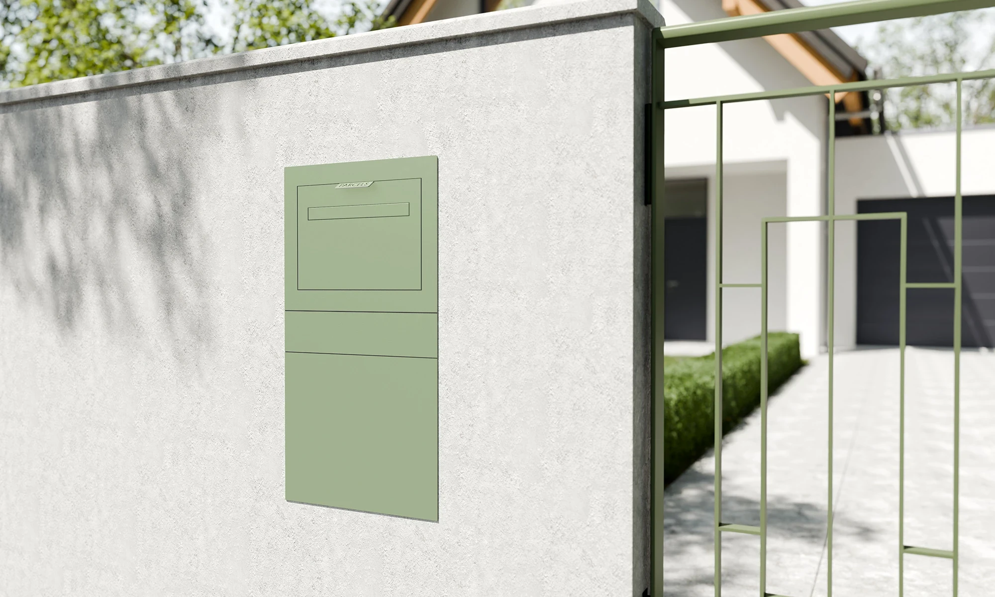 A parcel letterbox seamlessly integrated into your fence or brickwork. Designed for easy installation with a concealed mounting system for a sleek, secure finish. Presented in an elegant Pale Green (RAL 6021) finish, the nearest RAL colour to the ever popular Chartwell Green, it blends beautifully with a variety of exteriors.